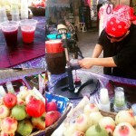 - Naz’ha squuezes pomegranate juice. Who knew there are four kinds? The light pink is the sweetest.