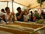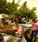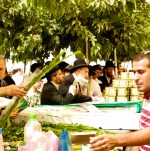 We spent Sunday morning at the Mechaneh Yehudah Shuk (bazaar/farmer’s market) amidst the bustle of the crowds shopping for the feast. I love Yerushalayim, and the shut is pretty awesome in their assortment of fresh produce (we just can’t find up here in Karmi’el), and delicacies. Right outside the shuk, was something I’d heard about for years, and really wanted to see it for myself. On Sukkoth is is traditional to procure “the four species.” The fresh branches of myrtle(hadas), willow(arahvah), and a palm branch bought separately and then bunches together, for a daily “wave offering.” The other is a yellow citrus fruit with an incredible floral fragrance. This is the etrog. And right before the holiday, there is a huge, tented, outdoor market just for this. Orthodox Jews from all over come to this market to find the perfect species. The palm branch must be completely straight and green, yet flexible. The other branches, full and fresh. And an etrog with the pitom attached to its end, and the perfect color, fragrance, and shape, with no imperfections can command a hefty sum. Procuring the right one is an art. The men come with their magnifying glasses and then barter begins. I choose my etrogs by fragrance, as I will use them in December to make jams and applesauce….