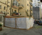 The day after Yom Kippur, you can hear the sound of hammering through the land as everyone rushes to build their little huts (Sukkoth is also known as the Feast of Tabernacles). The sukkahs appear on porches, on balconies, even in the streets – and not only do private homes and apartments take part, but also restaurants and cafes move their business out of doors. Some huts are fancy, decorated with tinsel, garlands, lights: others more modest. It is customary to eat all meals in the Sukkah as well as to sleep outside under the natural fiber frame to look at the stars. Even though it’s all about harvest, joy, and thankfulness, one is reminded that just like these huts, life is temporary and very fragile….