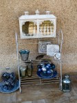 - I put seasonal decorations on the stand on the front porch. For Chanukah, there are silvered pine cones, blue and silver shiny balls, lots and lots of candles, and this year, my lovely Shabby Chic Chanukkia!