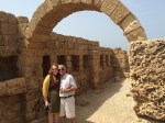 Of course we had to take our daughter to one of our favorite places – the magical Caesaria, just south of Haifa. The city started as a 12-year building project by the Edomite King Herod (King of the Jews) in the early first century as a tribute to Caesar. “He (Herod) chose an ancient lost city on the sea shore, because of its beauty and because it was worthy of honor…suitable for carrying out his ambitious plans…built entirely out of white stone displaying the brilliance of his mind.” Josephus Flavius. From the Roman amphitheater in the south to the Crusader city in the north, Caesaria includes the ancient Jewish and first-fourth century Christian and the third – eighth century Byzantine quarters. After the Byzantines, the Mamaluks, a Barbarian force of Mongolian warriors converted to Islam swept in, destroying some, rebuilding over much of the Holy Land. It was liberated and settled by Crusaders in the 1100’s, but after the Crusades, Ottoman Turks controlled the area until late 1800s-early 1900s. Today, we can get a feel for the Greco/Roman plays staged at the still-existing outdoor theater; the horse racing and gladiator fights at the hippodrome; and the lavish parties thrown by Herod at his once-expansive palace on the Mediterranean. It was the jewel and major port city of the Eastern Mediterranean Sea, and was the Roman base and capitol city in this newly colonized land of the first century. Because of the many conflicts between the Jewish people and their Roman occupiers under Vespasian, Hadrian, and Titus, the “Great Jewish Rebellion” under Bar Kochba (in which Rabbi Akiva was martyred) began and was soon quelled. Other important events here included the imprisonment of St. Paul before he was sent to his martyrdom in Rome; the home of Church Father Eusebius, and Jewish scholar Rabbi Abbahu. After many earthquakes and subsequent conquests, the city that had flourished for many centuries became a small, forsaken village. Now, a restored and continually excavated archaeological treasure, it includes an artists’ area, family parks, educational facilities, and wonderful portside restaurants. It is a favorite place for sunset wedding photography and celebratory events. The views of the turquoise,blue, and green sea from the remaining columns and aqueduct are majestic!