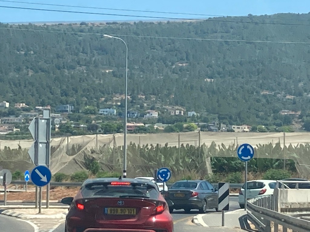 This year we ventured up to Kibbutz Rosh haNikra, an idyllic village/kibbutz tucked into the foot of the mountain that literally butts up against the Lebanese border. It’s an interesting juxtaposition. In the picture below, you’ll see the kibbutz. At the top of the mountain, you can see the border fence. To live here knowing that just a few yards away is the Hizbullah army with estimates of upwards of 150,000 missiles pointed towards you… it’s just about as interesting as us living a mere 12 miles from the border. Still, life goes on – you can also see the banana plants they grow here (foreground):