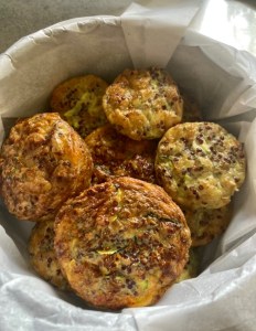 So now for the moments some of you dear readers have been waiting so patiently for: the recipes!!! I’ve been on a quinoa kick here for the past month. This powerhouse of a seed/grain is just loaded with vitamins, minerals, protein, and antioxidants, and is so versatile. The following dairy recipes use quinoa. The first is a cheese puff, that is great as a breakfast or a snack. Take it on a picnic or store it in a freezer bag in your freezer. I made several huge batches, and packed up a box for my son to take back to school. Everyone absolutely loves them – and they are so easy to throw together. The quinoa cooks up in ten minutes, so it’s a quick recipe as well as nutritious.