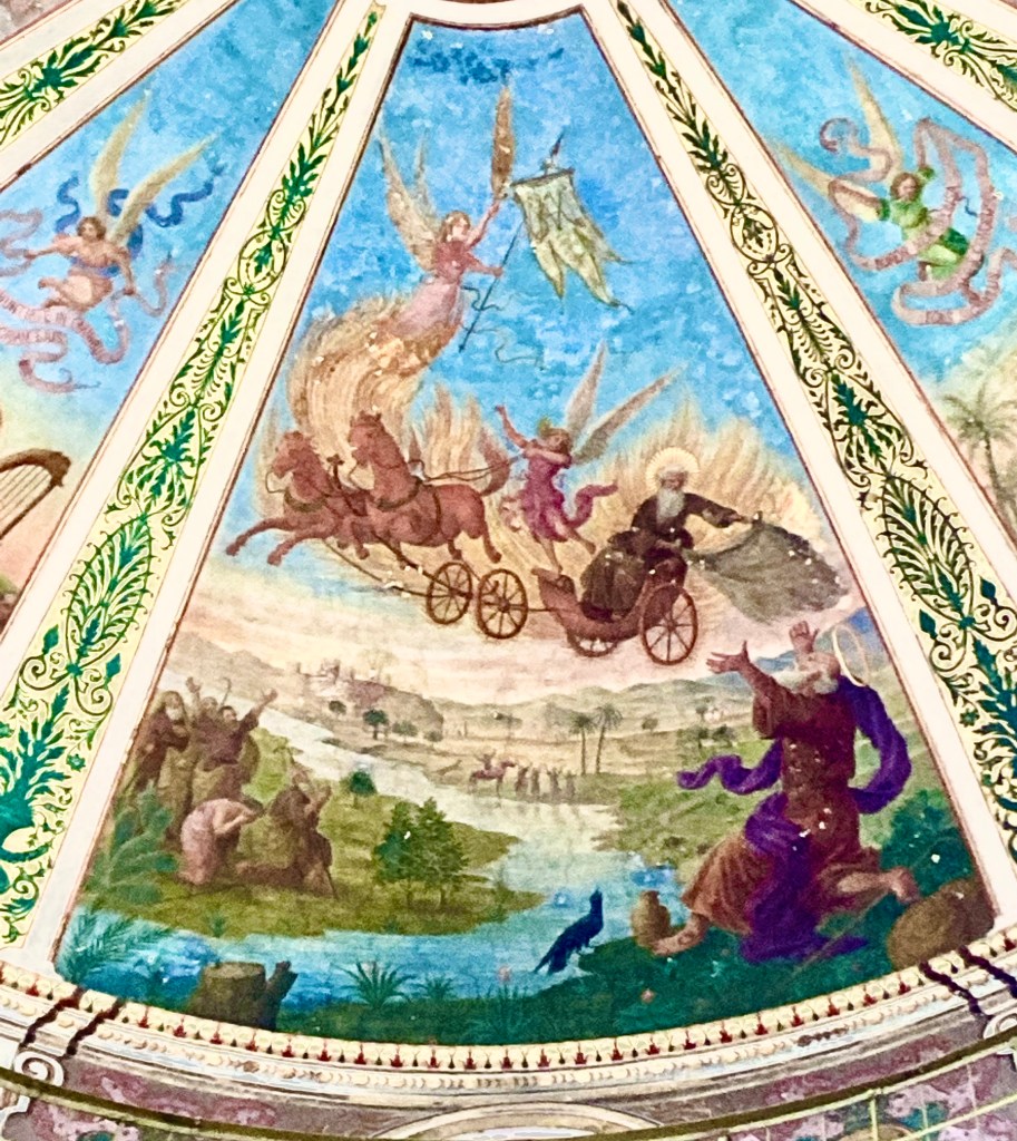 Fresco, Ascent of Elijah, on the wall of Stella Maris