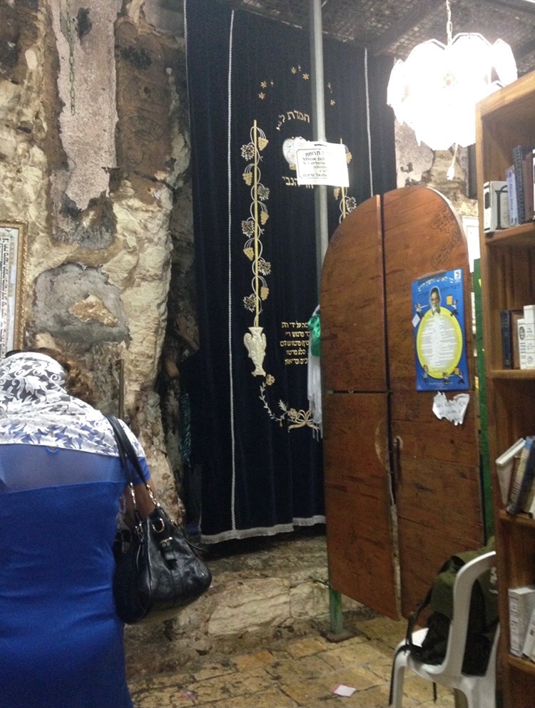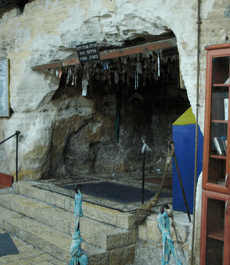 The Jewish Cave of Elijah is at the very base of Mount Carmel near Bat Galim Beach in Haifa. It’s not terribly well known. To find it, you must go up a flight of steep steps to a person’s private residence. The old stone home is built right atop the entrance to a cave. Finding it is not so easy as it’s not well marked and the cave is behind a large set of wooden double doors. Once inside, there is a divided cavern – one side for the women and one side for men, as prayer is segregated by sexes in Judaism. At the back of this cavern is a smaller chamber in the rock where the Holy Ark containing the Torah scrolls are kept. All in all, the cavern is spacious, dimly lit and musty. Could this be the place?