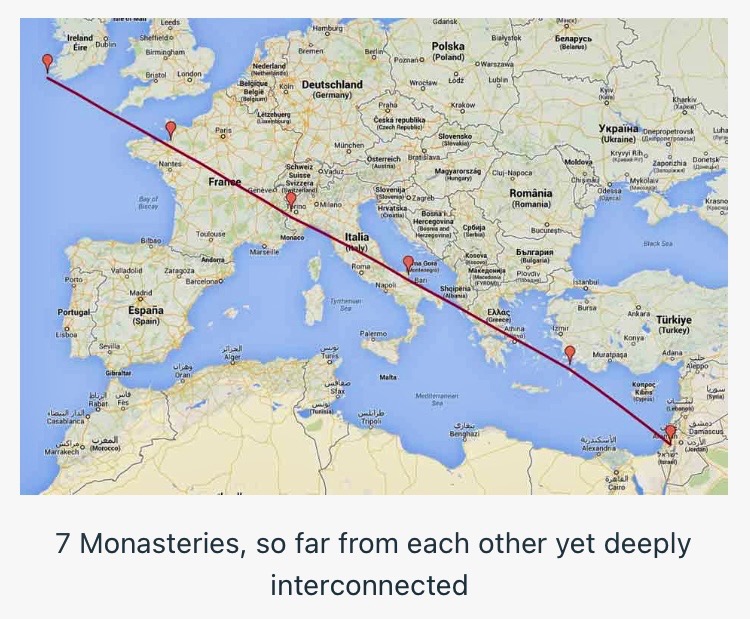 Before I get back to Elijah, there’s another thread I want to share (that happens all the time here. I’ll go for one story and find three other fascinating ones as well!!). A mysterious, invisible straight line links seven monasteries from Ireland to Israel. They were built independently of one another from the sixth to the sixteenth centuries and are all very far apart from each other, yet all in a line. As the story goes, the archangel Michael fought a great battle in heaven with Lucifer/Satan, eventually hurling him from heaven to earth. It is said that the line of churches follows the path of Michael’s sword, the tip landing in Haifa on Mt Carmel. The first monastery is located on the island of Skellig Michael in Ireland…on to St. Michael’s Mount in Cornwall, UK…Mont-Saint-Michel in Normandy, France…Sacra di San Michele in Turin, Italy…Monte Santangelo, Italy….Simi Monastery, Greece… and Stella Maris. And all were supposedly built by direct request from an apparition of St. Michael, Archangel.