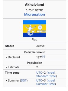 For all of this Eli Aviv was arrested by the Israeli police and border patrol. He was thrown into jail, but released ten days later when the judge ruled the charge ”Creation of an Independent Country Without Permission” did not exist. Still, he was hounded by the government until he brought a countersuit. The high court ruled he could have a 99-year lease.