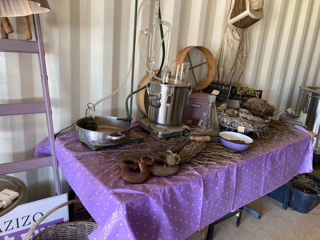 There is a classroom on site at Azizo Lavender for demonstrations, experimentation and projects for different ages. Throughout the year schoolchildren visit the farm to learn about the distillation process. They learn about all the different uses of this herby flower from medicinal to cosmetic to culinary. The ‘King of Essential Oils,’ lavender is antiseptic and anti inflammatory, so can aid in burns, headaches, digestive issues, skin problems, insomnia and is an anti-anxiety remedy. Azizo produces the finest soaps, candles, lotions, balms, oils, diffusers and sachets. The list is quite lengthy. Beehives have been placed adjacent to the fields, and now lavender honey is also part of their venture. Lavender fruit jams, lavender liqueur, lavender syrup, lavender chocolate! Azizo Farms has teamed up with DeKarina Chocolates to produce the chocolate and the liqueur. Powdered lavender is jarred for culinary uses. Herbes de Provence, their secret blend of Israeli herbs with lavender, mint, thyme, oregano and other dried spice is also available in the shop, which has been open daily for six years now.