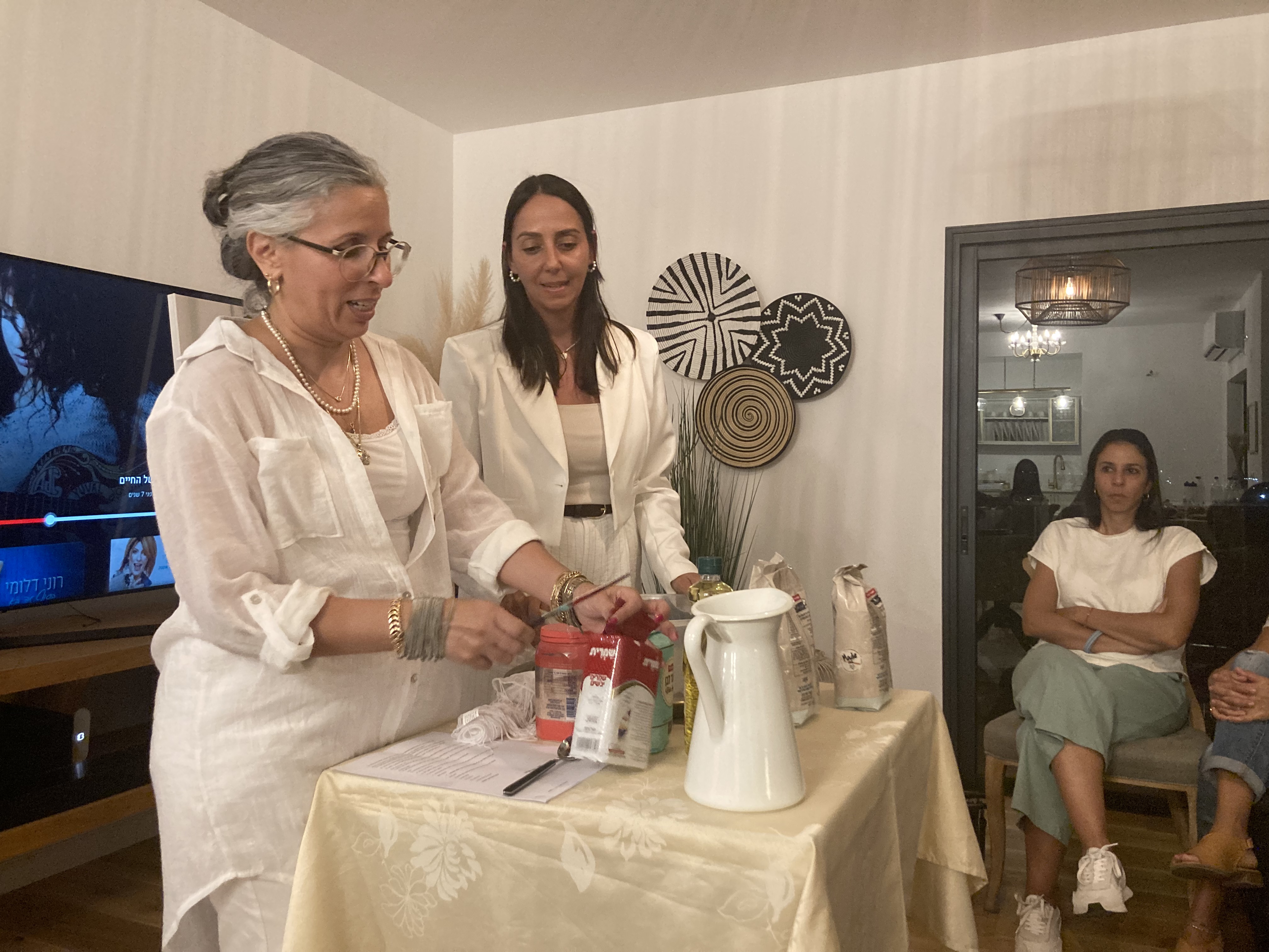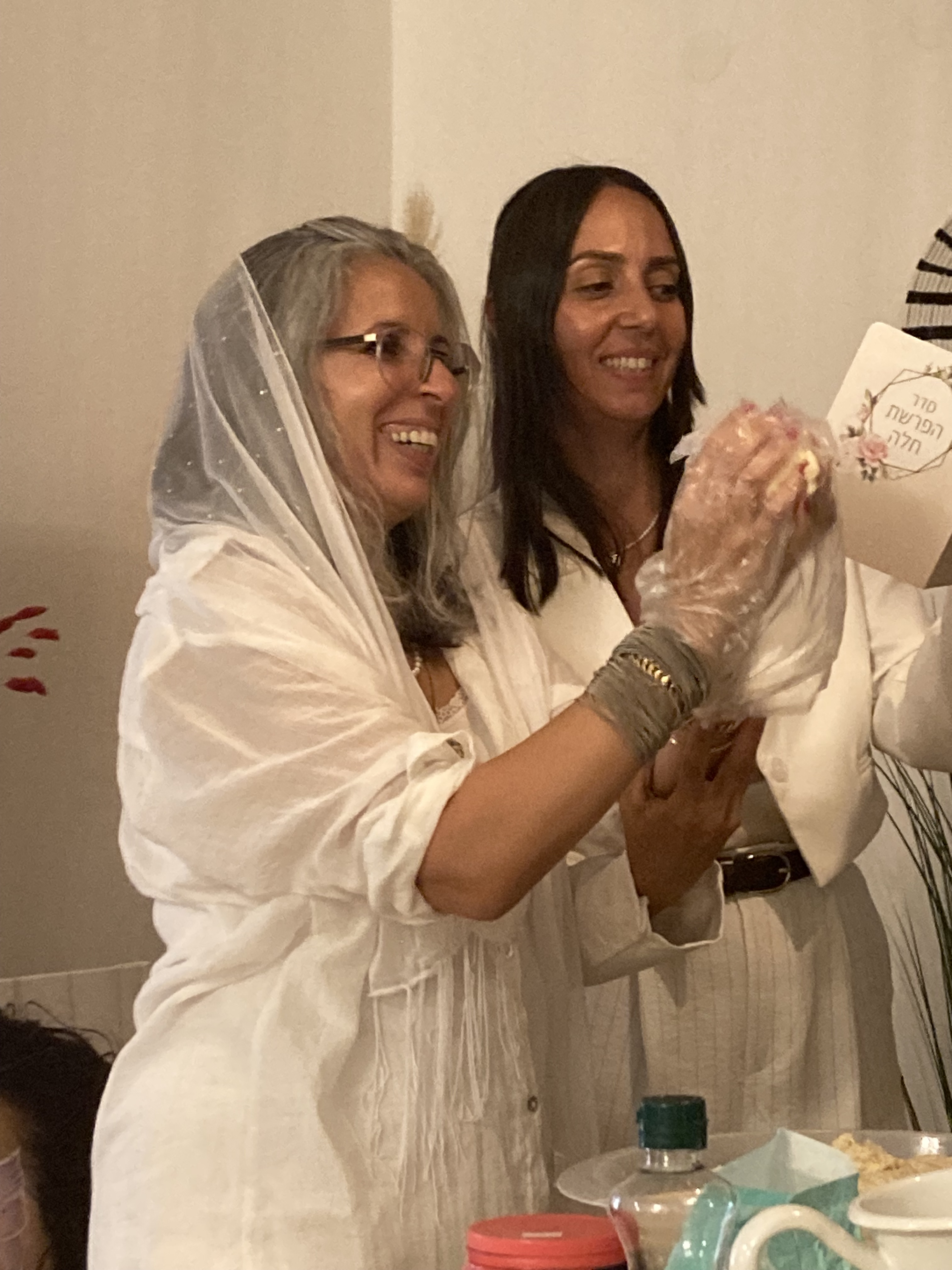 While our personal loaves rose, we were invited to partake of a lovely spread. Each woman was presented with a little packet containing a booklet on how to make challah, a lovely booklet with the challah blessings and a book of the prayers that are said first thing in the morning. Upon leaving, each woman lit a candle and spoke forth their dreams for the new year: dreams of an easy labor and healthy baby; dreams of peace; dreams of health or healing for a loved one; of national unity; for angelic protection during their child’s military service. I was amazed that none of the ladies’ prayers were for themselves. It was a most uplifting night.