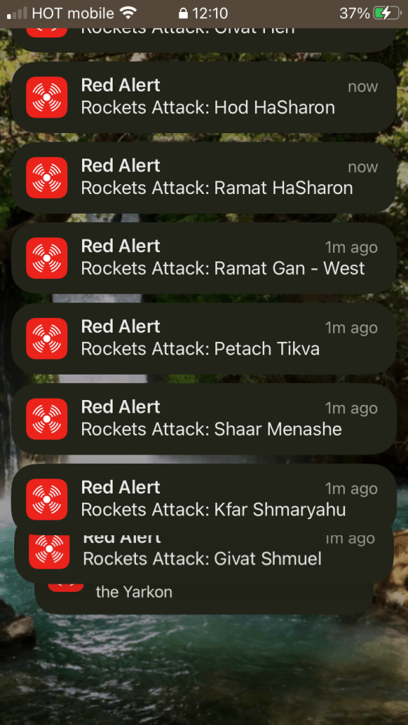 Thank you for your concern. Where we are, so far, it’s been relatively safe. We took our son back up to base last night which is always exciting and fun. He got a promotion so now has new bars. We can occasionally hear the activity from the border and we’ve filmed 4 iron dome interceptions which were far enough off but quite visible. Praying a lot and trying to keep to as normal a schedule as possible, which is now nonexistent