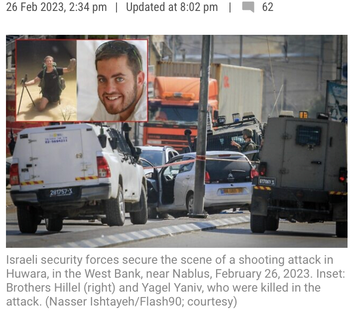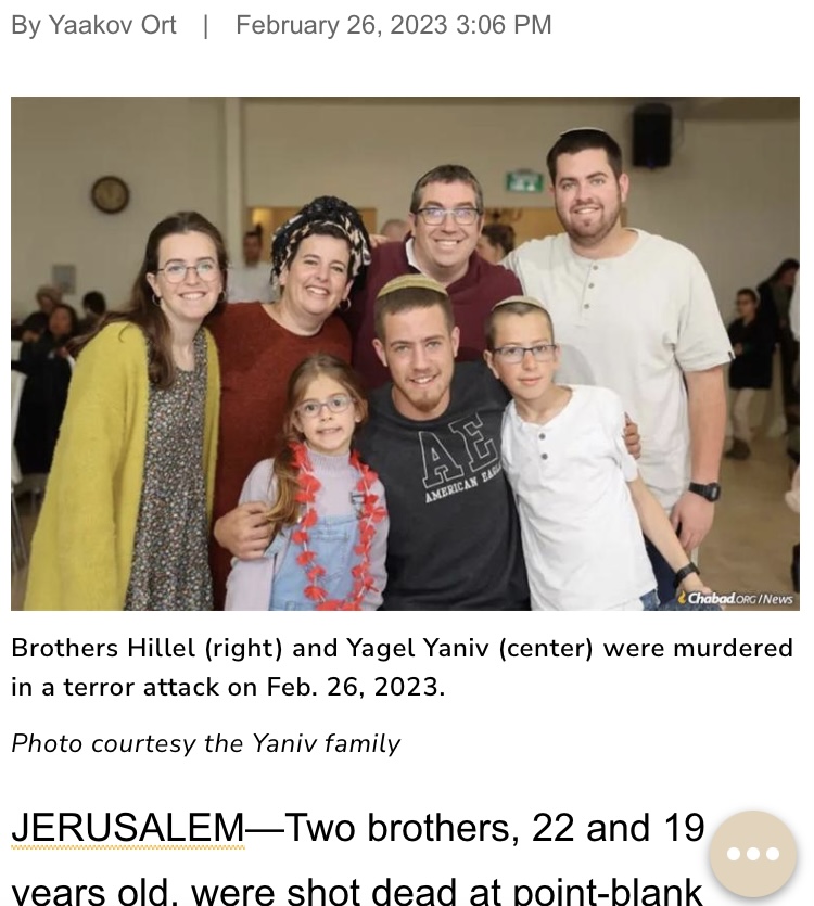 You won’t hear of it in your news. I searched the internet for over an hour for any of the attacks: the stories were buried. Hidden. The only reason I am able to present them to you here is because I know the names of the victims. There were 7 such attacks from February to April, 2023. The mainstream media downplays them, choosing to focus on ‘Israeli settler violence’ and the ‘cycle of hate.’ (There were 4 more cases, one involving children, brothers, who were attacked while waiting at a bus stop. Another of a toddler shot in a stroller, and also a father of five young children shot to death returning home from work last year). Most of these attacks were perpetrated in the past year and a half, with the exception of the Fogel family of Itamar. In 2011, there was a Palestinian infiltration into the Samarian (West Bank) kibbutz and the entire family was slaughtered in their beds. The other incident happened right before Yom Kippur 5 years ago. My good friend, American-Israeli, Ari Fuld was stabbed by a terrorist.