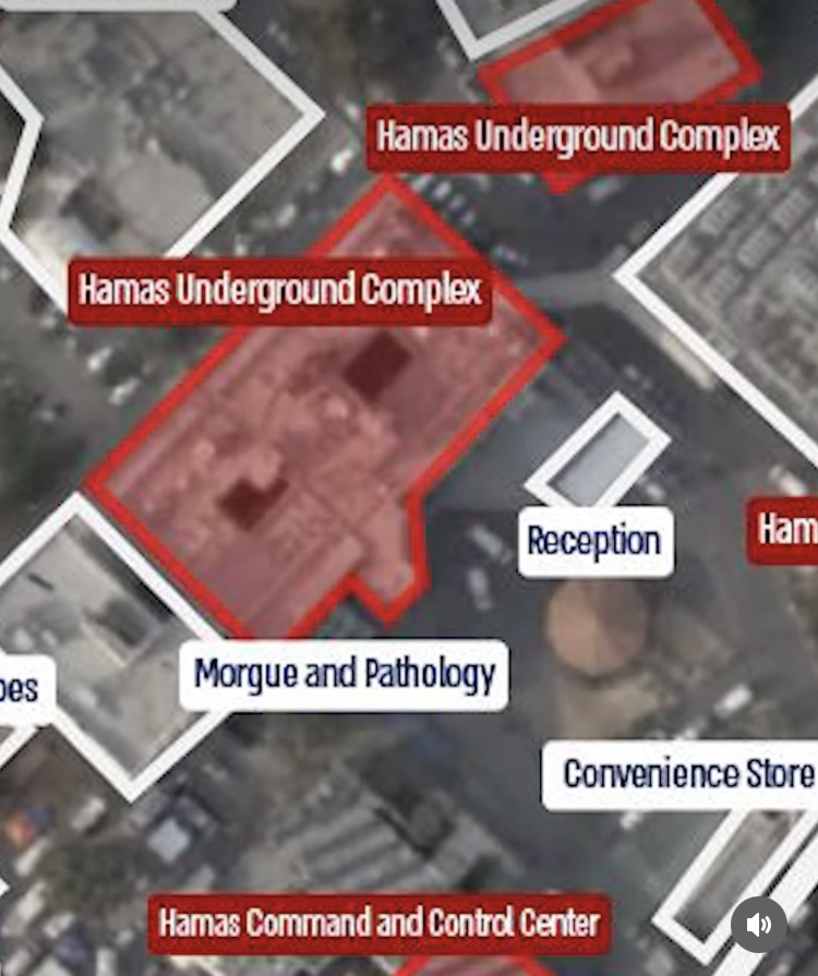 Yesterday, it was revealed that the Hamas headquarters were found underneath the Shifa Hospital complex, Gaza’s largest medical center. There are multiple access points inside the hospital buildings which lead to the vast underground spiderweb tunnels and terrorist infrastructure. They have blatantly placed humans as shields here. The command centers are under the medical center. In addition, Hamas uses the water, electricity (generators) and fuel supply stored that, which should be used for the people of Gaza and for the hospital. They have diverted the precious resources intended for the Gazans to be used for their own terrorist activities. This is UNWRA verified. Last night the head of the IDF, showed a mock up 3-D model of the hospital and where everything is located based on verifiable Intel. After the October 7 attack, many terrorists were instructed to hide and regroup here in the Roentgen room (X-ray), laboratory, morgue, and under the convenience store. Hamas needs to be held responsible. This is a war crime.Also, it is the plan of Hamas to bait the IDF into creating a huge humanitarian international event and using it for propaganda.