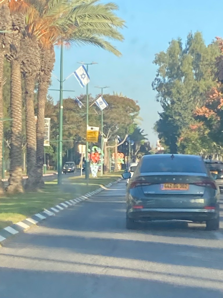 My son fell quite ill, so we rushed down towards Tel Aviv (OK, so this Jewish momma made 4 quarts of chicken soup with matzo balls for him) to take him to urgent care. On the way down I was shocked at the outpouring of patriotism. Israeli flags everywhere!!!