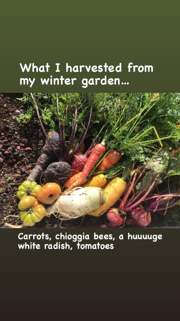 What else is for dinner? I cook on Thursday/Friday to carry us through the week. After Friday, I do no cooking on Saturday, limited reheating on Sunday and leftovers on Monday, Tuesday. Wednesday comes our fresh organic local produce delivery and boy, is it crazy amazing!!! If you’ve ever read the Biblical story of the 12 spies in the book of Numbers, you’ll remember that they came back LOADED with giant fruits and vegetables!!! And a bad report about ‘giants’ living in the promised land (they worked for AP, Reuters, NPR , BBC and AlJazeera).