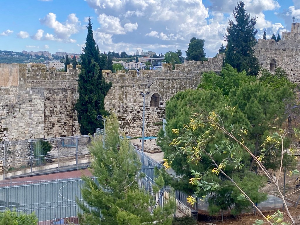 Jerusalem in the spring is a place of incredible beauty. The wisteria is in full bloom and just climbs over the old buildings. The fresh mountain air is still crisp and cold and the surrounding Judaean hills are still green.