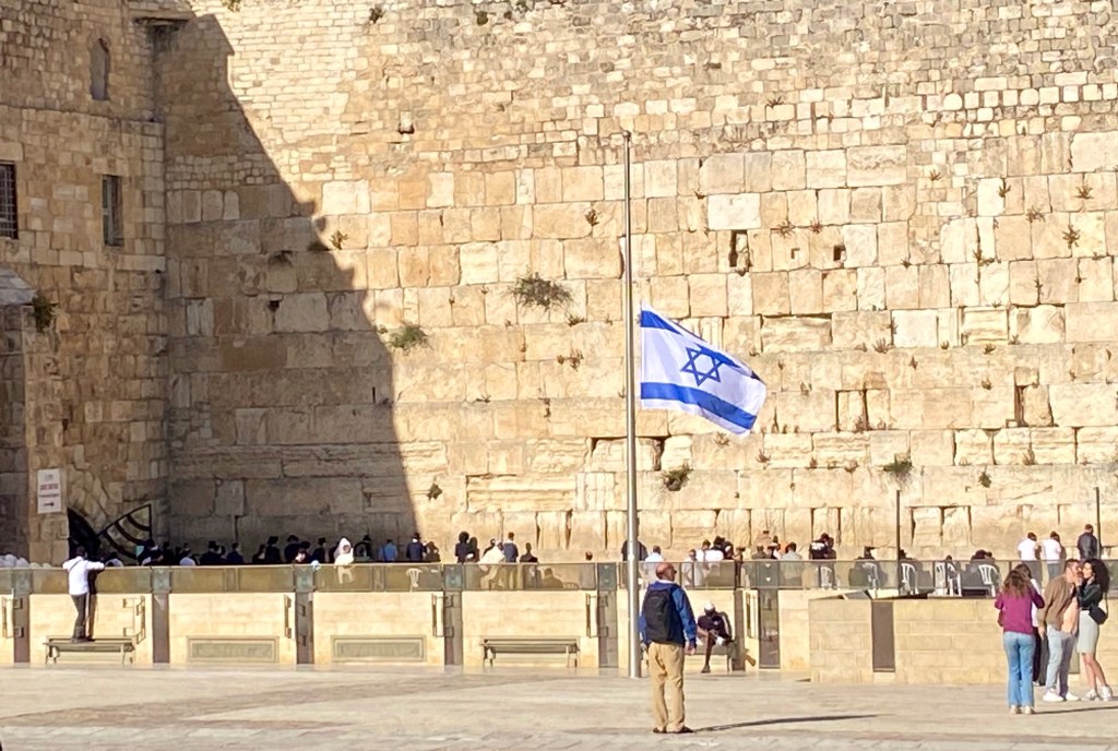 Flags were flying half mast for the five soldiers who were killed by missile fire as they unloaded humanitarian aid at the Kerem Shalom crossing on Sunday. It was quiet. Very quiet there. No groups singing, dancing, praying at the Kotel Plaza. No bands of soldiers. Only a few seminary girls in their long skirts and mothers with young children. A few men praying at the wall. It was easy to get a chair and bring it right up against the cold stones.