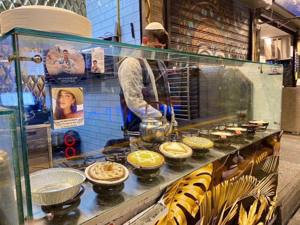 We really needed this breath of fresh air. In the morning, we headed out for breakfast at a sabich place. Oh my goodness!!!! If you have never had a sabich, are you in for a taste explosion when you come here. I’d never had one of these Middle Eastern delights until I came here, and this place was the absolute best. So what is a sabich (pronounced sah bikh with that gargling sound at the end)? You take a big fluffy as a cloud pita, smear the inside with humus; put in some hot fried potato slices; a sliced hard boiled egg; some pickles, fried eddplant; amba (the most incredible pickled mango sauce); some schkoog (hot!!!!!!) for the adventurous; more eggplant -crispy outside, soft inside- techineh, cucumber, tomato, onions, more amba and humus. It sounds wild and IS WILD!!!! Fairly healthy, incredibly filling. All together delicious and wholly satisfying.
