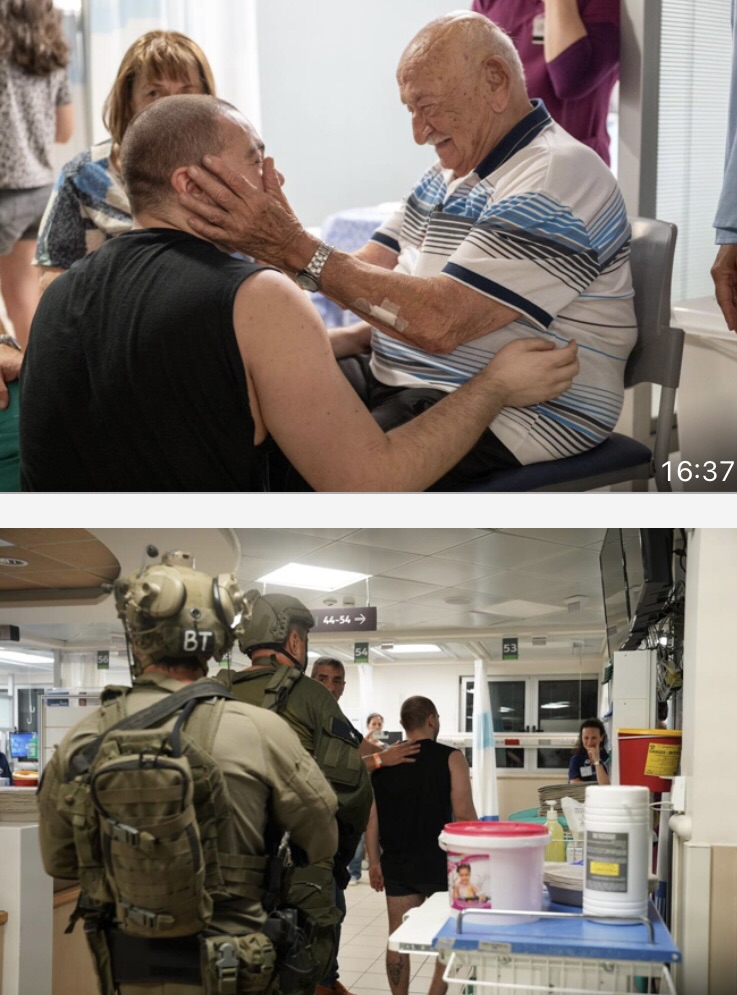 Almog Meir-Jan’s story is heartbreaking. When he was admitted to Sheba, his mother and grandfather were waiting for him. IDF representatives came to Almog’s father’s apartment to tell him the good news of his son’s rescue and imminent homecoming. There was no answer at the door. His sister, Dina, who had a key, entered the apartment and found Yossi Jan had passed away. His father, Almog’s father, believing he would never see his son again, and not knowing of the rescue operation, had died earlier that morning. They said he died of a broken heart. Dina told reporters that all the stress over repeated hostage release fails contributed to Yossi’s death. He just could not bear it any longer. He died twenty hours prior….
