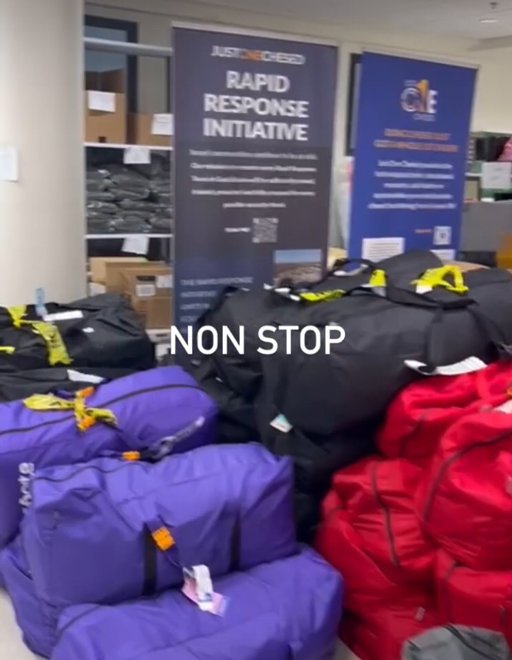 The group’s many volunteers are working tirelessly to meet the direct needs of the Israeli soldiers and the Israeli people. Their two central locations, one in Efrat and the other in the Gush, take in requested donations and distribute them immediately, both to the soldiers and to the people in need. At the onset of the war this past October, so many Israelis, Lone Soldiers and expats answered the call to defend the country. Reservists of both sexes and all ages returned to Israel, flying in from all over the world. Over 360,000 people showed up, and the IDF was so overwhelmed that they couldn’t meet the immediate needs of the soldiers. Just One Chesed stepped up to the plate, bringing in everything from army boots and sleeping bags to medic kits, hygiene items, hydration systems, straps for soldiers’ guns, helmets and other tactical gear.