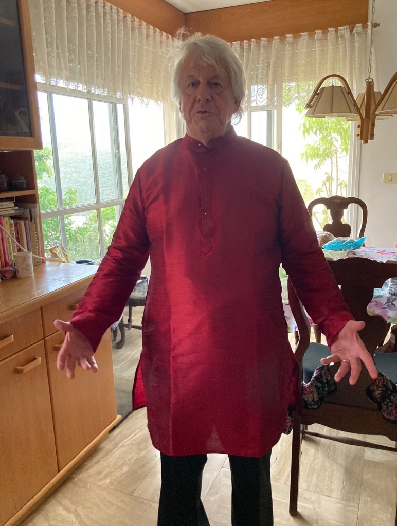 John has a friend, too, Rathin, who was here on his residency/internship. Rathin and Steffi both live in Tamilnadu province in the very southern tip of India. John, who always admired Rathin’s clothes, was gifted two gorgeous silk shirts. And I received the most beautiful sari. In turn, the Indians do lots of shopping for religious and holy objects, dates and dried fruit, techineh and MiddleEastern spices and trinkets to take back home with them.