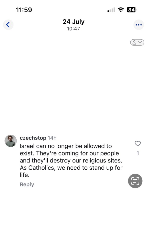 On 8 August (this video has gone viral), Montreal multiple onlookers stood idle and filmed the incident as a Jewish man was severely beaten in broad daylight in front of his children. He was pushed into a fountain and his kippa kicked beyond reach. Antisemitism in Canada is out of control. For some, the anti Israel, anti Zionist rhetoric has spilled over into anti Jewish vitriol. In Canada, even the very conservative, Catholic author and podcaster, Mark Mallet, has fallen into this. I will address this particular case later in the week.