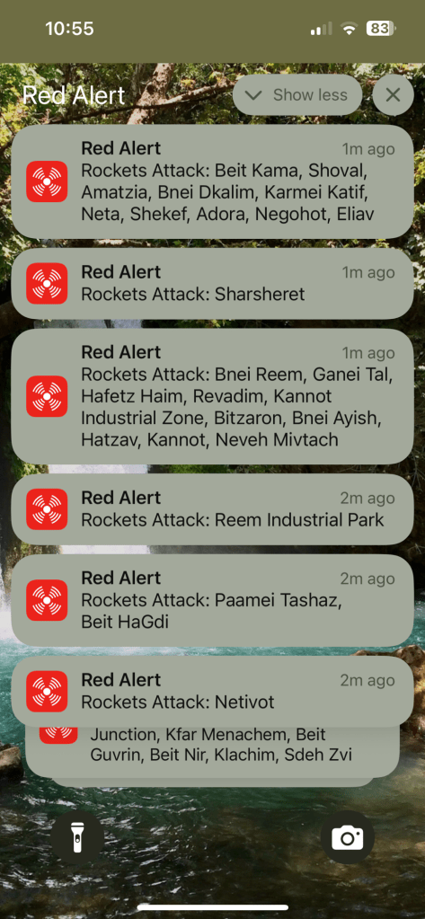 For the ones who are “just absolutely scared to death for you!” Thank you for your concern. If you have ever lived in Israel, you know that we value, cherish and love life. It is a precious and fleeting gift. We do not take ur blessings for granted. And we live every minute as it is our last. Every moment counts. We are not afraid. Exhausted. Overstimulated. A bit anxious even. But not scared to death. We have a firm belief that our lives are in G-d’s hands, and that is not a bad place to be. So stop your doomscrolling social media and listening to the fear mongering of divisive media outlets. Pray. Do good deeds for others today. Pick 3 things to do that will be a blessing each day. But don’t be scared to death. We are fine. We will be fine.