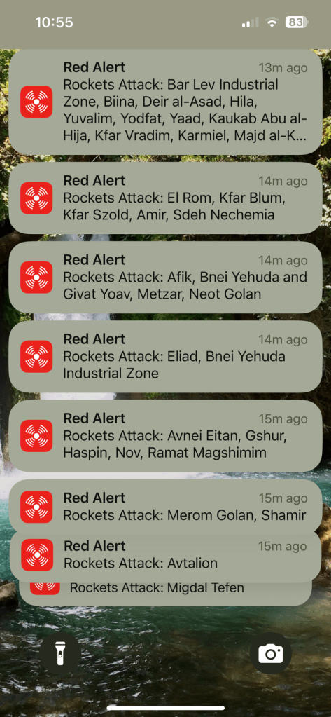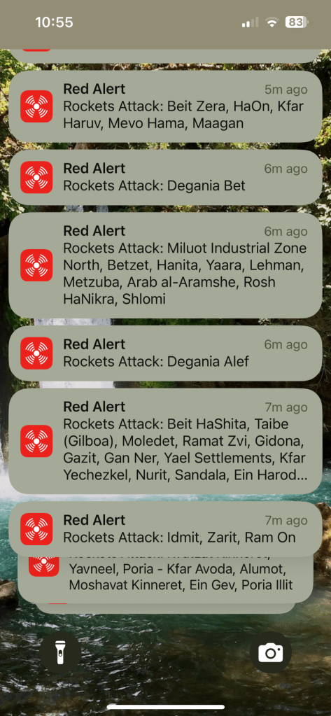 Today we woke up to another early alarm. It was a large barrage accompanied by the news of Trump and the US aid the military gave to strike the nuclear powerhouses that we couldn’t reach. I’m actually really glad that threat has been neutralized and pray it will not lead to anything larger. In the meantime,