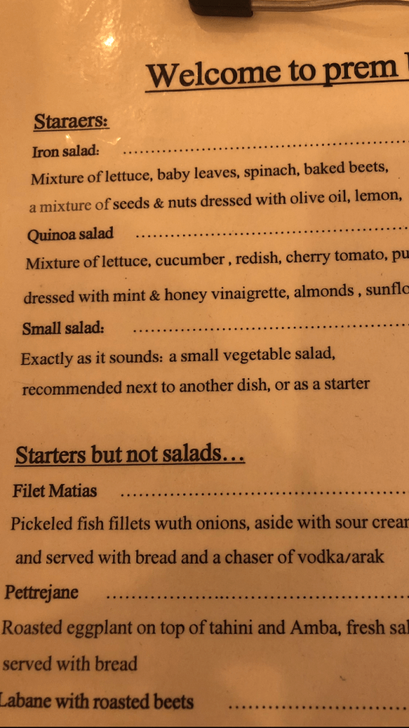 We met my son and a good friend we hadn’t seen in like forever for dinner. we had planned to spend about two hours, but it quickly turned into five hours. I love so much about Israel, one of which is the restaurant service. You are not expected to vacate your table right after you eat. They expect you to take your time, to sit and talk and enjoy the company. We had decided upon an outdoor table at a Sarona Market restaurant.