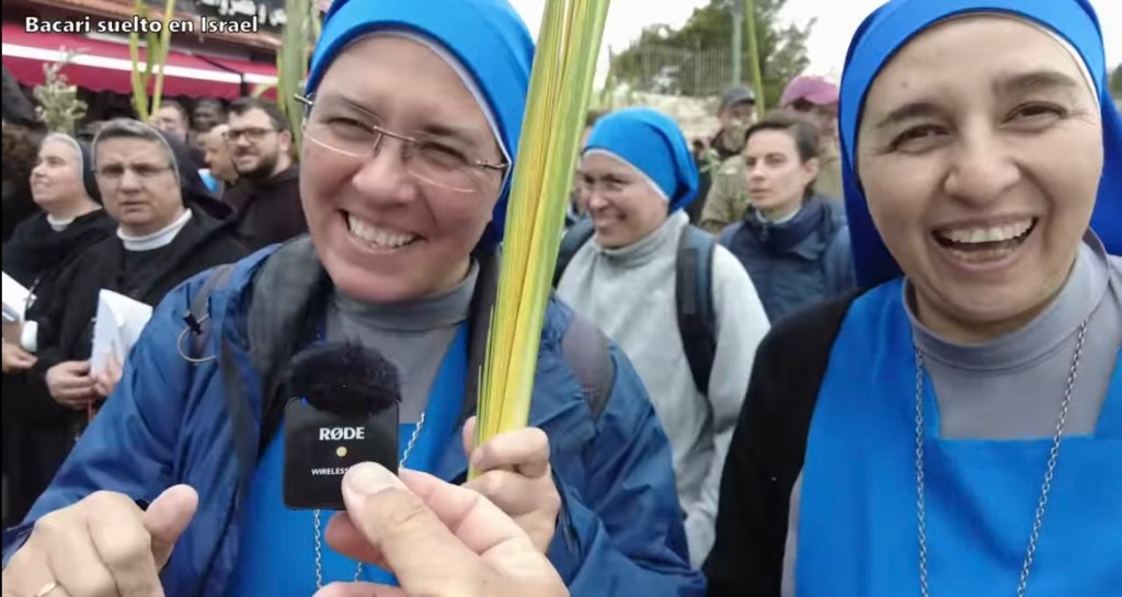 As the Seder feasts wound down in the wee hours of last Sunday morning, Holy Week started for the Christians. Thousands gathered with palms for the traditional Palm Sunday walk. Tens of thousands of pilgrims came from all over the world. The crowds were still not as large as in most years, but the festivities started at BethPage at the top of the Mount of Olives, Har Zeitim. The Latin Patriarch and the Franciscan Custos of the Holy Land blessed the palms and the participants in the walk. The Arab Israeli Scouts from Jerusalem, Nazareth and Ibillin led the procession.
