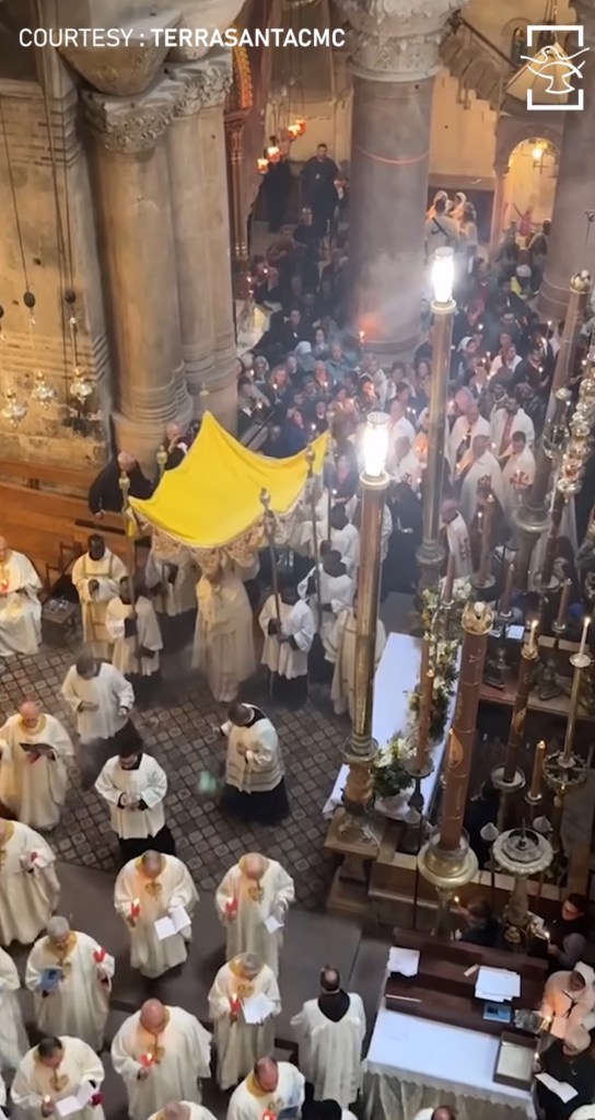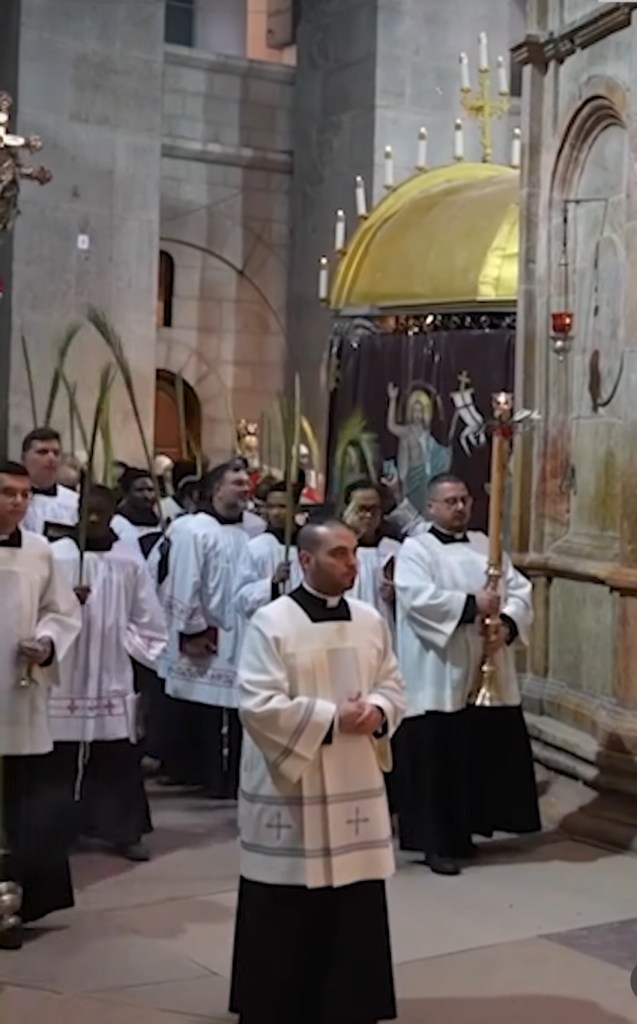 Cardinal Pierbatista Pizzaballa, the Latin Patriarch, commenced the Catholic liturgies at the Church of the Holy Sepulchre. There was a solemn procession from the place of the crucifixion to the stone where Jesus was wrapped and then throughout the church to the tomb where Jesus was interred. The faithful gathered to reverence, kiss and touch objects to the holy stone slab.