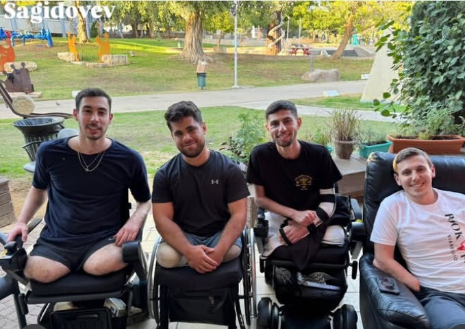 Four of our young IDF heroes who were critically wounded in battle against the Hamas terrorists had to fight to live. Amital, Roee, Ariel and Ari lost both their legs. Ari also lost his right hand and several fingers from his left hand. They have been in rehab together, and have become fast friends. Their spirit is indomitable. All have been fit with prosthetic legs. They enjoy boxing and plan to become paraolympians. Roee is engaged to be married this March.