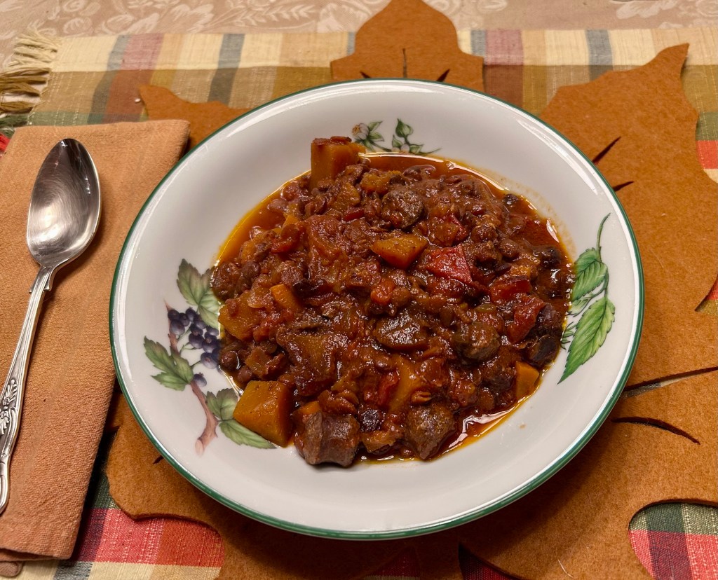 In a large skillet cook the sausages, removing outer casing if necessary. Reserve to plate to cool. In same pan, sauté the cubes of onions and peeled carrots – cubed to bite sized chunks. Chop the sausage into 1” thick coins. Add to crock pot. Chop bell peppers into small cubes. Put into crockpot. Peel and remove seeds from squash. Cut into bite sized cubes. Place in crockpot. Peel and cube sweet potatoes. Into the crockpot. Rinse the lentils well, removing any stones or “dry stalks” and dump in crockpot. Pour in the veg stock (can use all natural bullion cubes) and dump in can to tomatoes with juice. Stir well with a big spoon. Remove the pits from the dates and chop coarsely. Scatter around crockpot. Add the spices and tomato paste. Add the Silan or honey. Stir well. Chop about 1/2 cup fresh fennel and add to crockpot last. Mix well and cover. Set the power to low and let cook for hours (overnight). Can add more water if needed. Freezes beautifully.