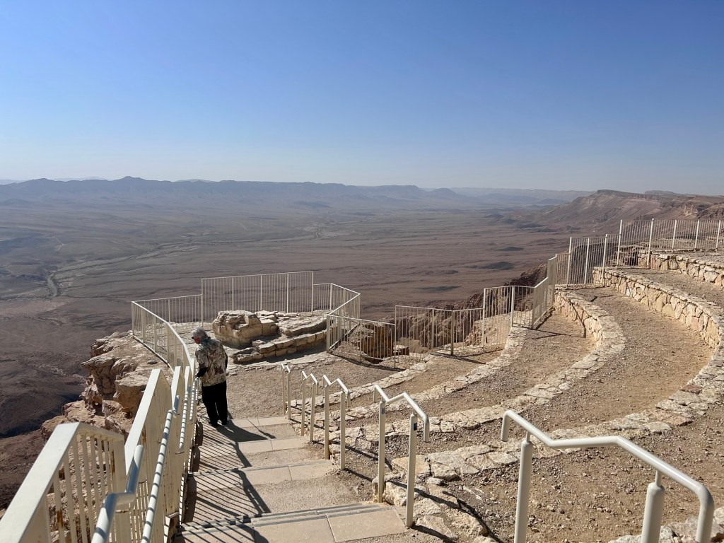 Spectacular lookoutsMoses & Co were hereThe vastness of the desertNow building multi million dollar homes near the edge of the craterIt’s a long way down Yes. Ibex roam freely throughout the desert. They are very used to people.Isrotel has crater front villas with private pools- coulda stargazed from here.Have I told you how much this man scares me?