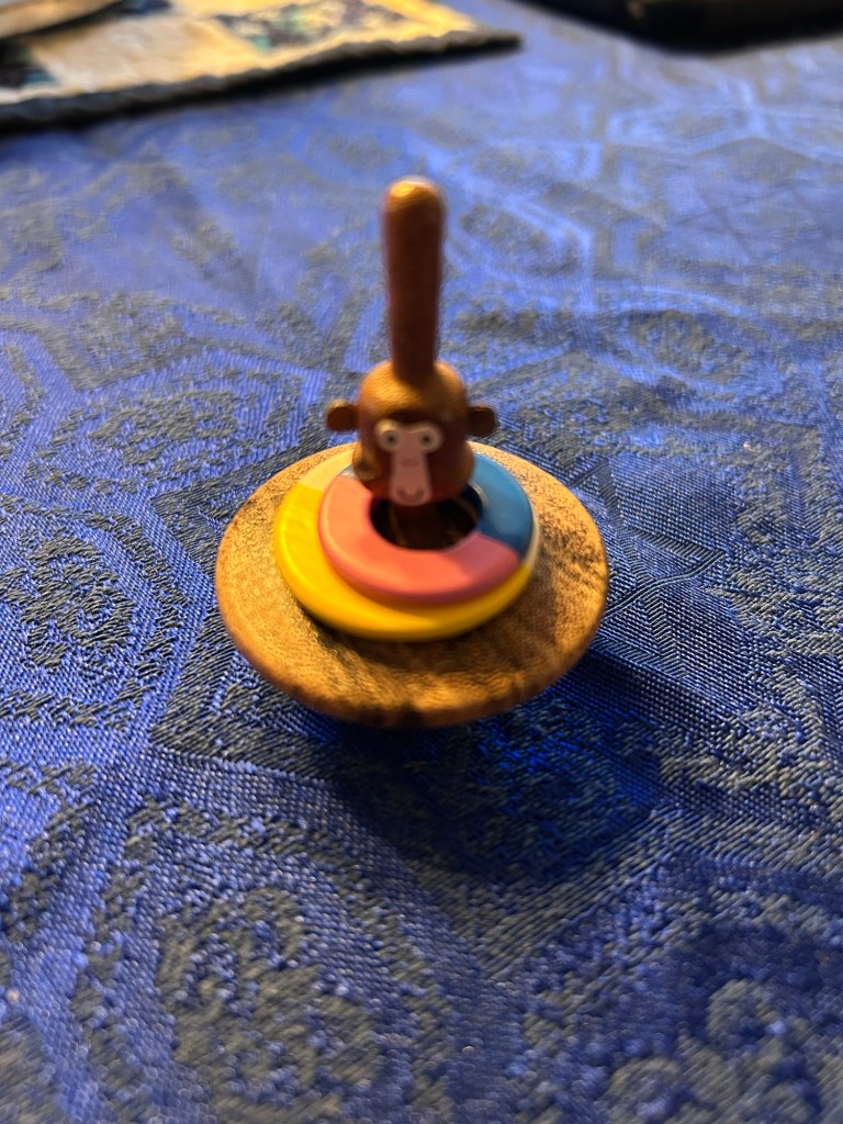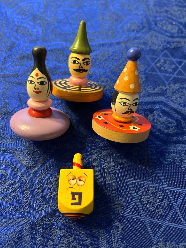 Afterwards we stopped by the First Station for some shopping and doughnuts. Dreidels (the Ashkenaz Yiddish word) or in Hebrew, Sevivonim are spinning tops. Traditionally in Hebrew, the four sides are marked with Hebrew letters which stand for the words ‘A Great Miracle Happened Here.’ There are games that center around the children playing with the tops and collecting prizes of candy and coins. One shop had hand made, carved and painted sevivonim, the likes of which I had never seen. The prices were more than reasonable, so I bought one for each of my grandchildren. They are nothing short of magnificent!