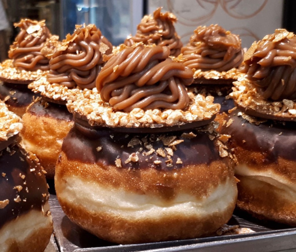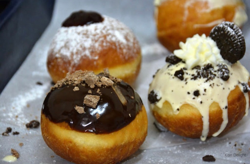 And the sufganiot!! Many have little plastic syringes filled with flavored jellies and creams that you inject into the puffy fried doughnut. All were very fancy. I don’t think you can find them anywhere except in Israel at Chanukah!