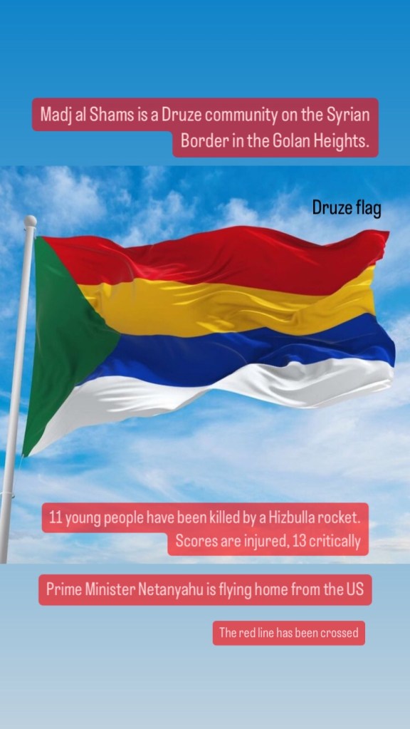 Just a half an hour ago as I write this (the news is coming in so fast from so many direct sources, it’s hard to keep up), the Israeli Defense Minister told the Syrian regime “ gestures are over, now expect painful blows. Druze can count on the IDF. To protect your brothers in Syria.”